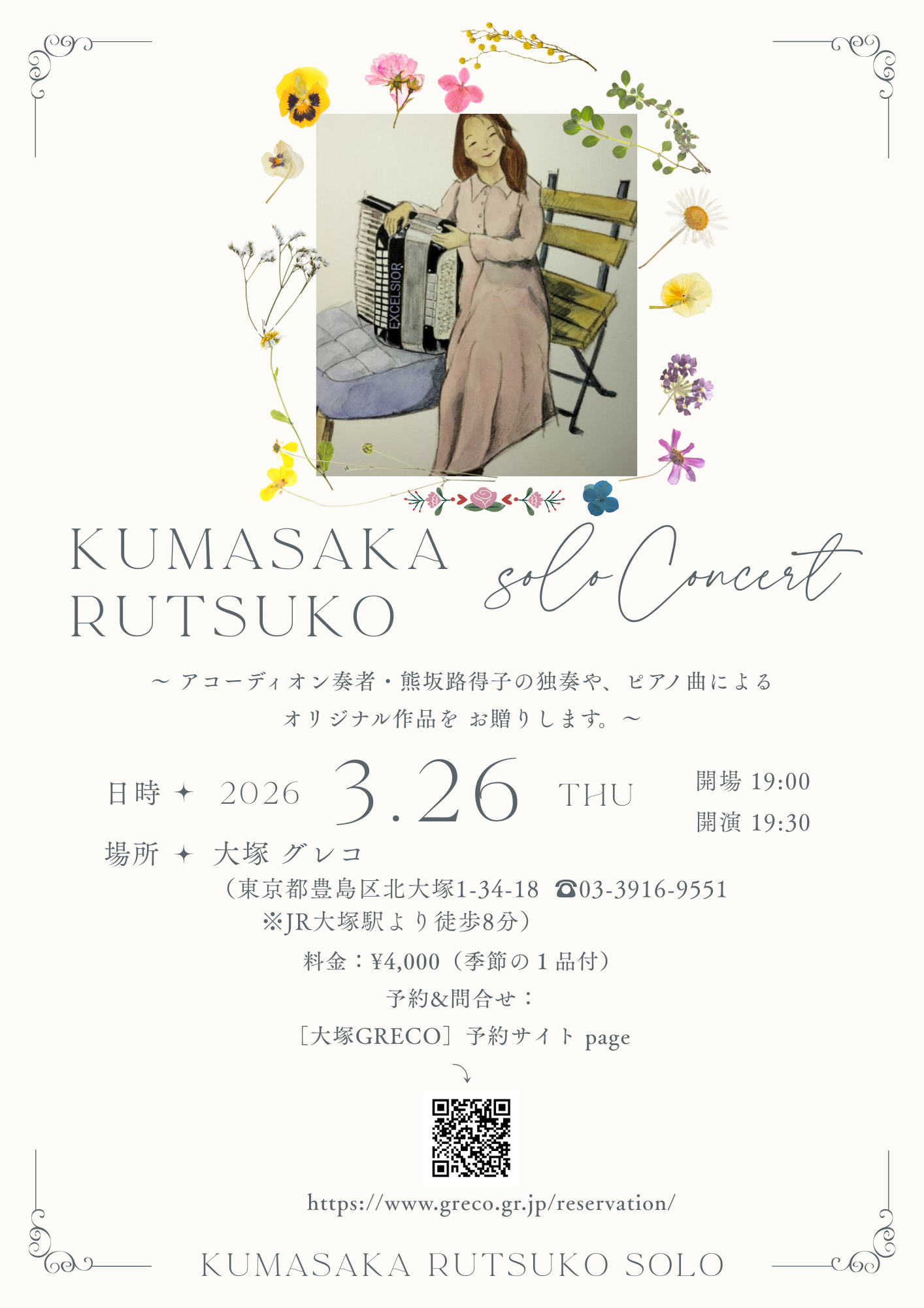 予約&問合せ:大塚GRECO 予約サイト → ⭐️