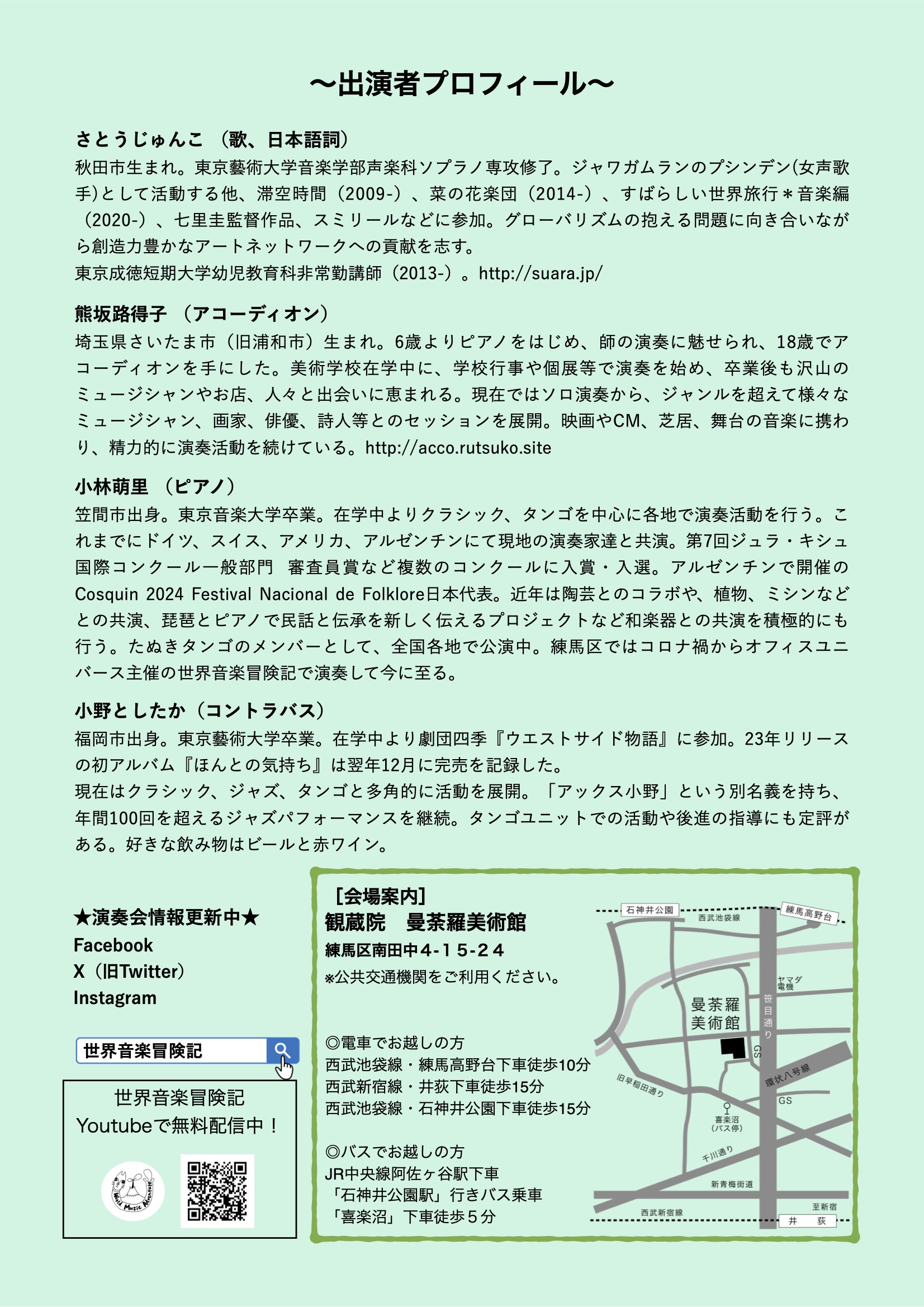 出演:寺田町(gt,vo)+ 熊坂路得子 (accordion)